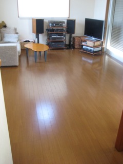 リビングのラグをとって、まわりにある物を出来るだけどけて、広いスペースを作ってみたよ