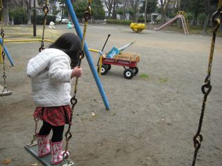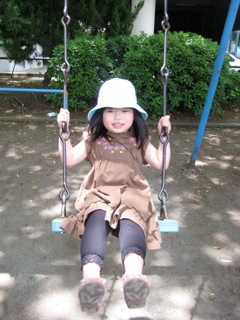 日本の座るところが木のブランコは初体験のnatsumiでしたが
