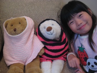 natsumiがぬいぐるみのクマを赤ちゃん抱っこして