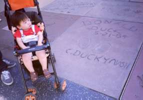 Mann's Chinese Theater前。ドナルドダックの足型を前にぼんやり。